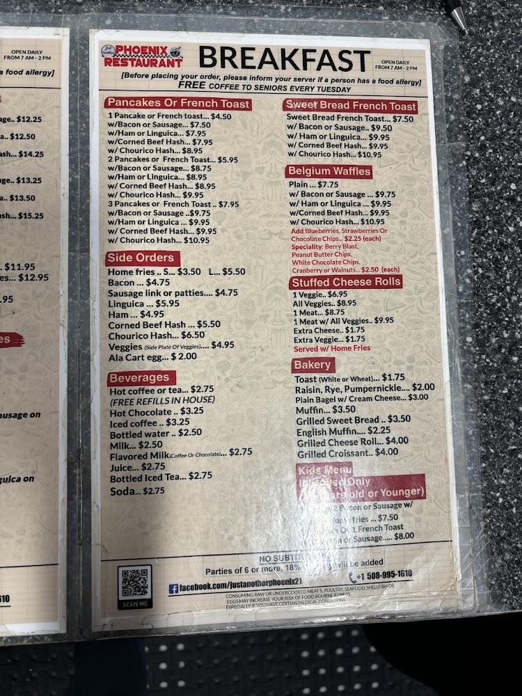 Just Another Phoenix is a cherished breakfast and brunch destination located in Dartmouth, MA. Known for its hearty home-style meals made fresh each morning, this cozy eatery offers a delightful menu featuring fluffy pancakes, loaded omelettes, and other comfort favorites prepared with local ingredients. With new specials every week, there’s always something exciting to try. Whether you’re enjoying a daily coffee or a weekend family feast, our friendly service and warm atmosphere make every visit special. Stop by and discover why we’re the go-to spot for delicious mornings and vibrant conversations.